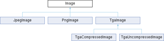 Implemented in JpegImage, PngImage, TgaCompressedImage, TgaImage, and TgaUncompressedImage.